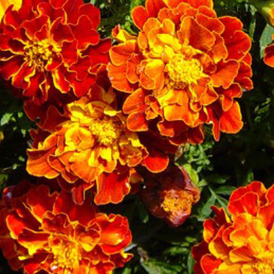 (Tagetes Patula). Zonminnende plant geeft biologische bestrijding van wortelziektes (aaltjes). Felle warme kleuren.